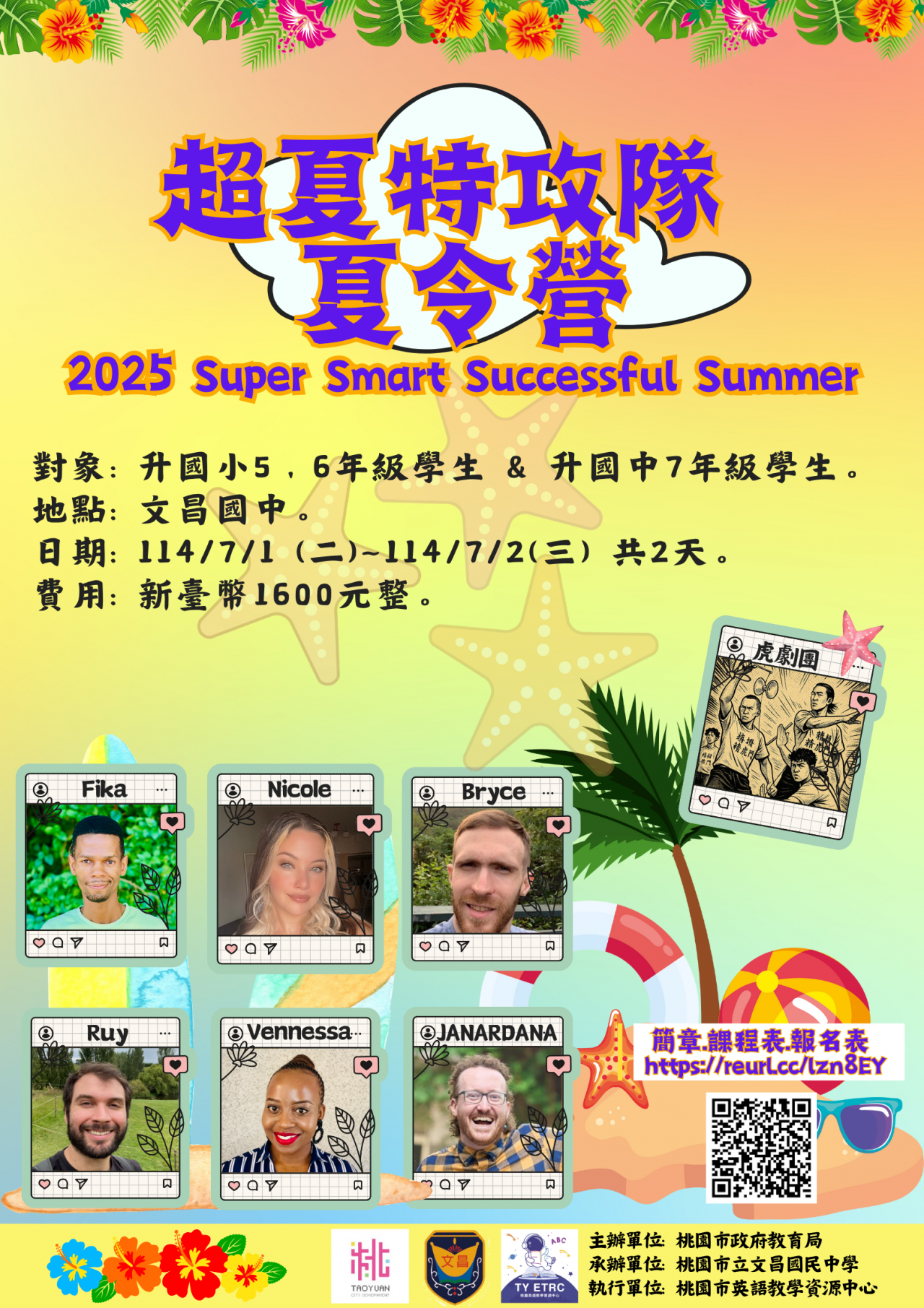 | 桃園市辦理「2025 Super Smart Successful Summer 超夏特攻隊夏令營」暑假營隊一案,鼓勵學生踴躍參加。 |