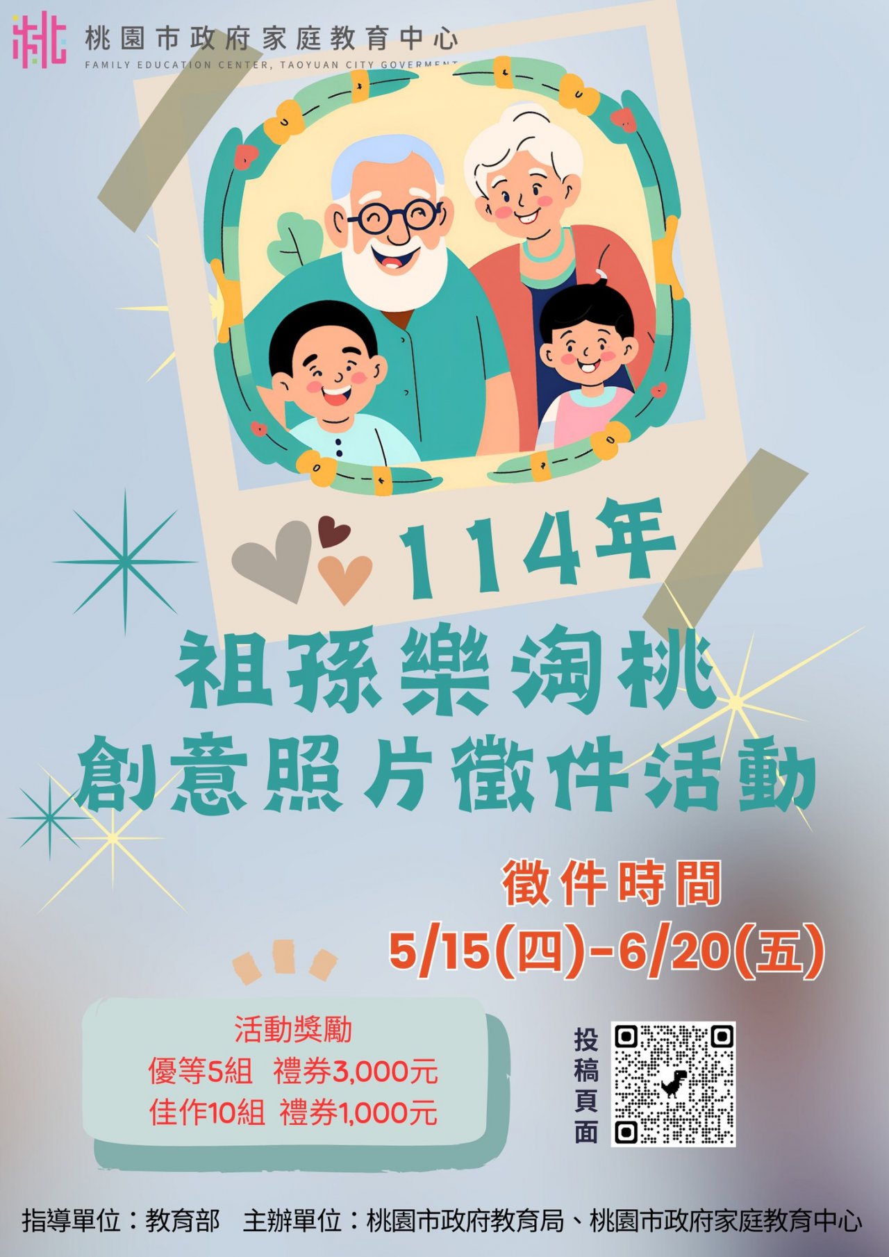 二、 | 「祖孫樂淘桃創意照片徵件活動」係鼓勵民眾紀錄祖孫互動的溫馨時光,徵件期限至6月20日(星期五)止,惠請協助宣傳並鼓勵民眾參加,獎項及獎品如下: |