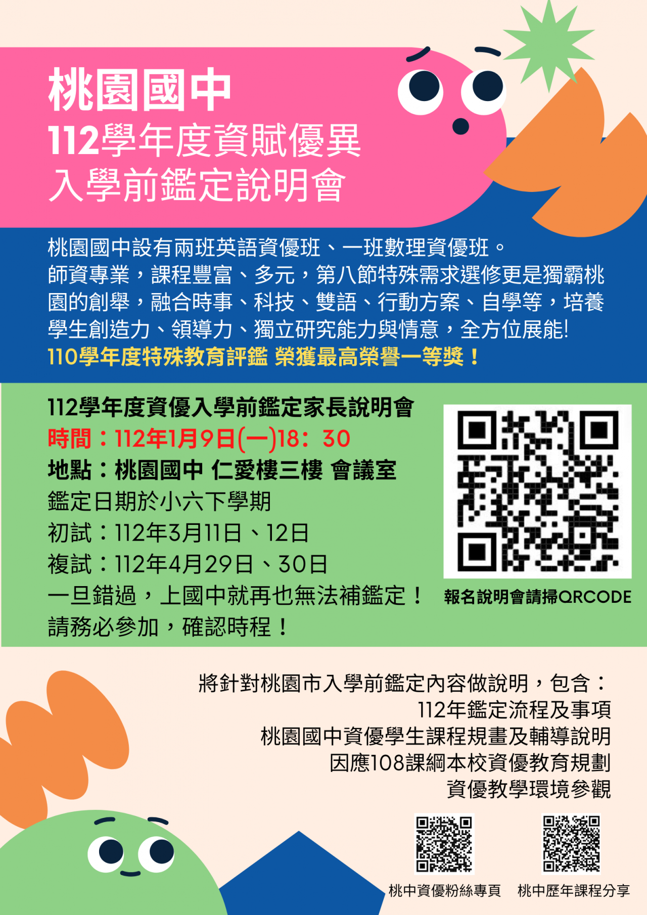 桃園市112學年度國民中學學術性向暨創造能力資賦優異學生鑑定