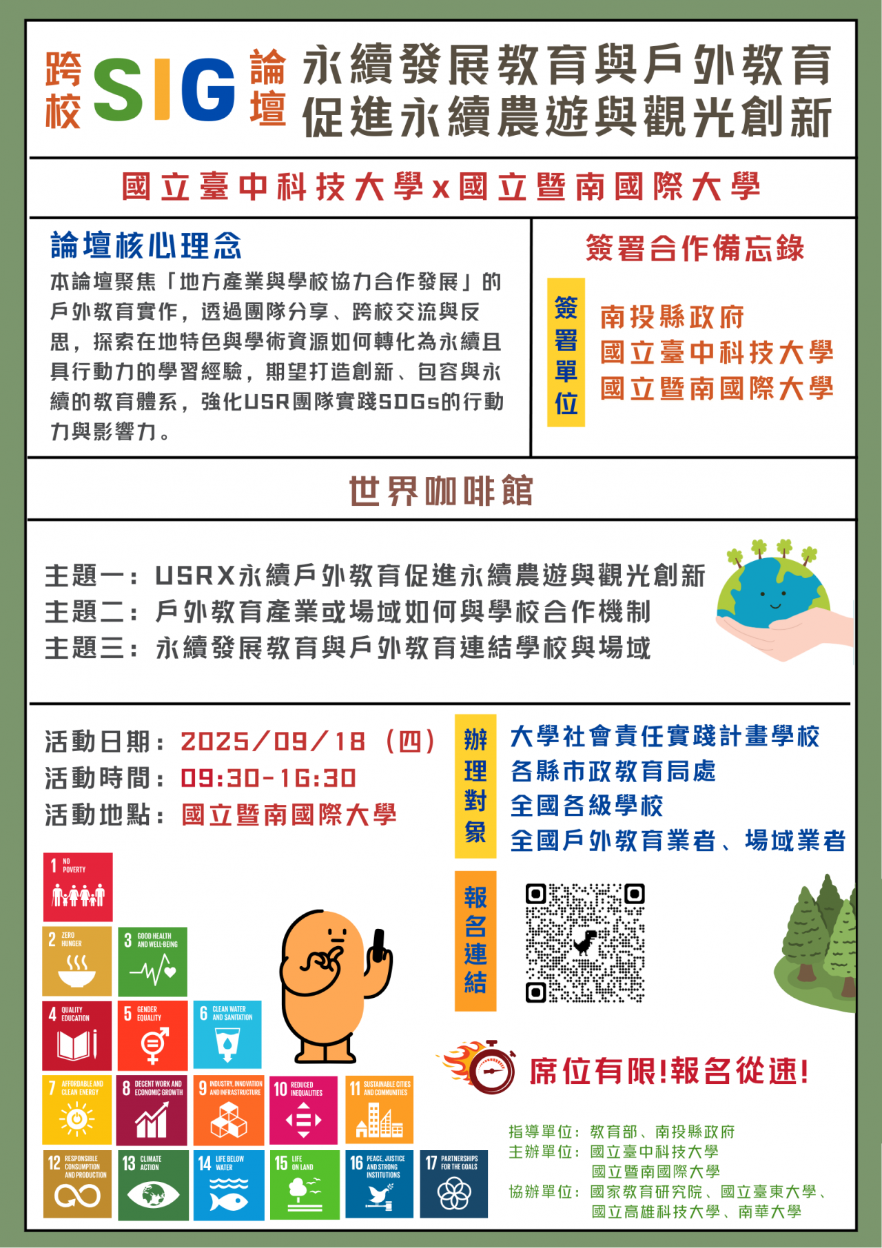 (一) 時間:114年9月18日(星期四)9時30分至16時30分。