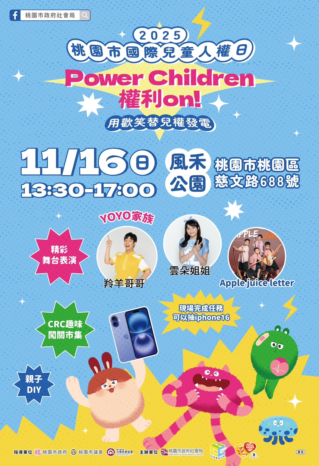 | 主旨: | 有關本府社會局辦理「114年度國際兒童人權日「Power Children 權利On! 用歡笑替兒權發電」系列活動資訊一案,請查照。 |